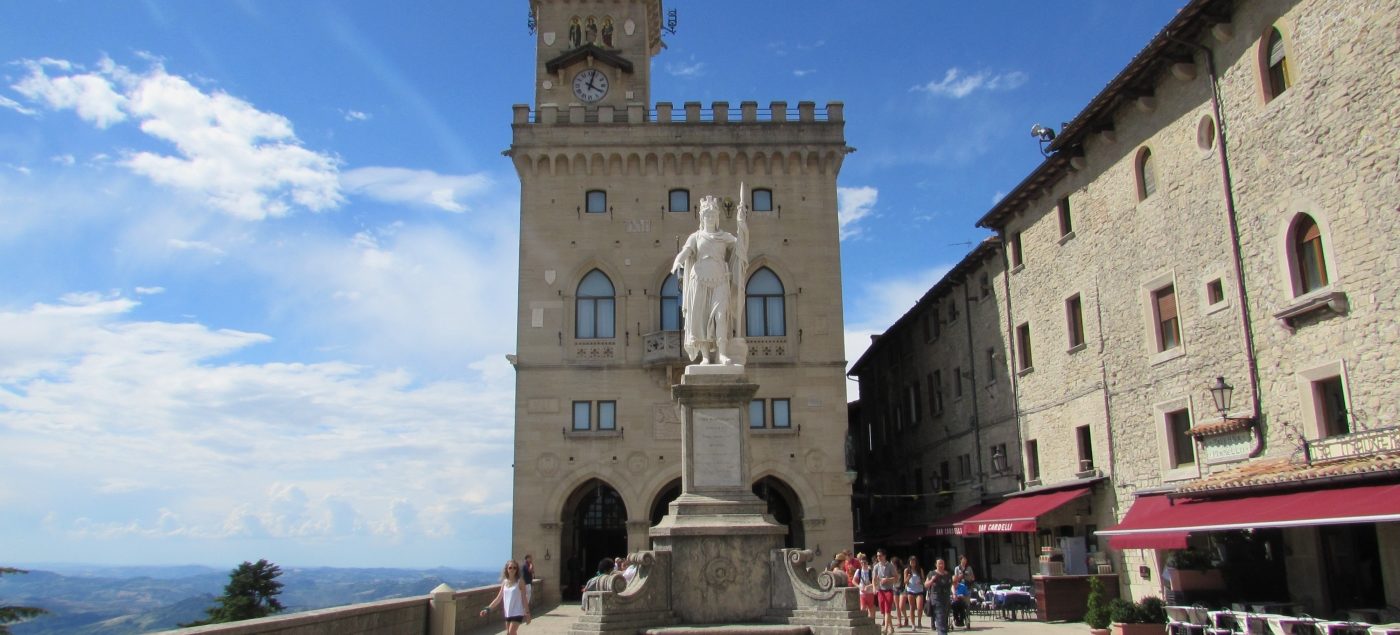 Incastonata tra la Romagna e le Marche, a pochi chilometri dalla riviera adriatica, la Repubblica di San Marino si estende su una superficie di appena 61 km.